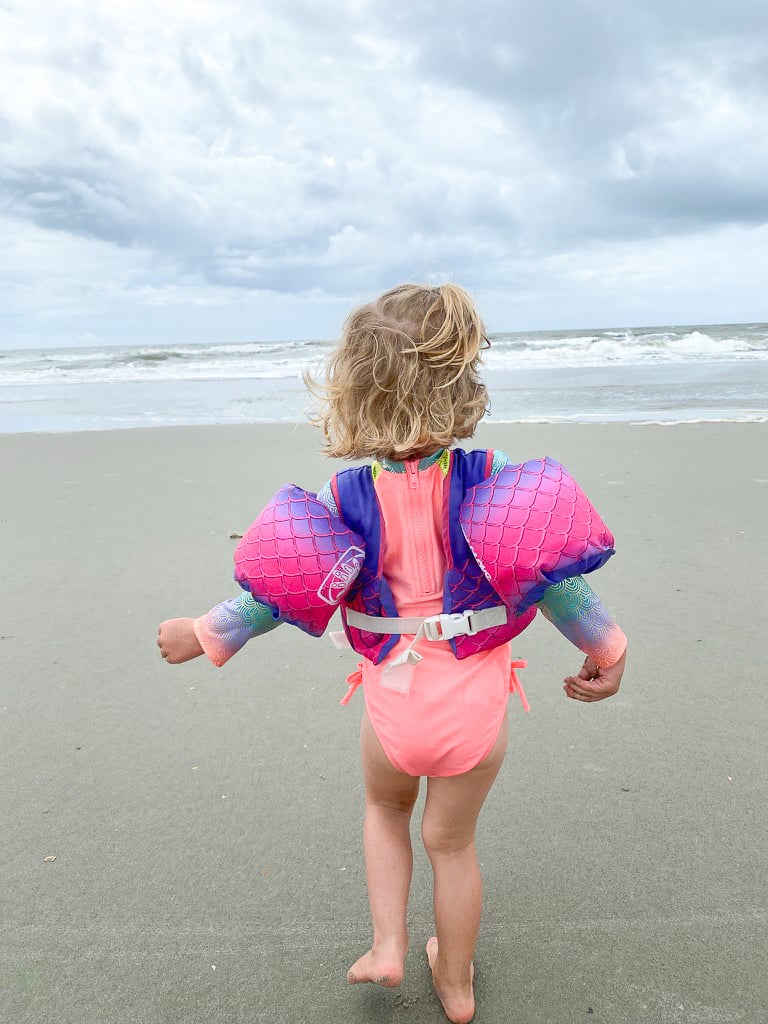 Body Glove Puddle Jumpers: they have a vest which is KEY to your kids not taking the puddle jumper off. Trust me. I will never buy one again that doesn’t have the vest feature. John Robert no longer has to wear a puddle jumper but if he’s out in the waves we often have him wear his swim trainer vest.