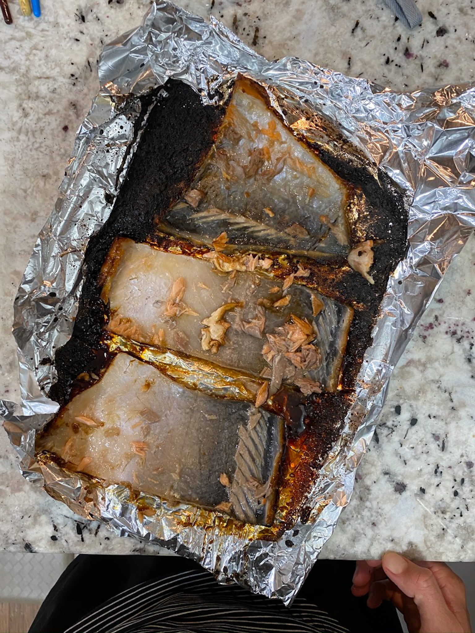 The best part is the easy cleanup. Now all you have to do is throw away the foil, your pan is still clean, and your salmon is perfectly skinless. WIN-WIN!