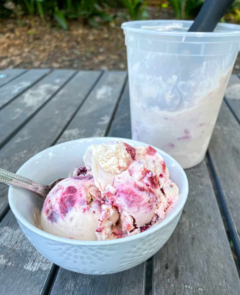 Lastly I want to note that this ice cream does get really hard. Before serving, you can pop it in the microwave for 10 seconds or set it out for 5 minutes to let it thaw a little. It gets exceptionally hard for really any flavor you make so keep this in mind!