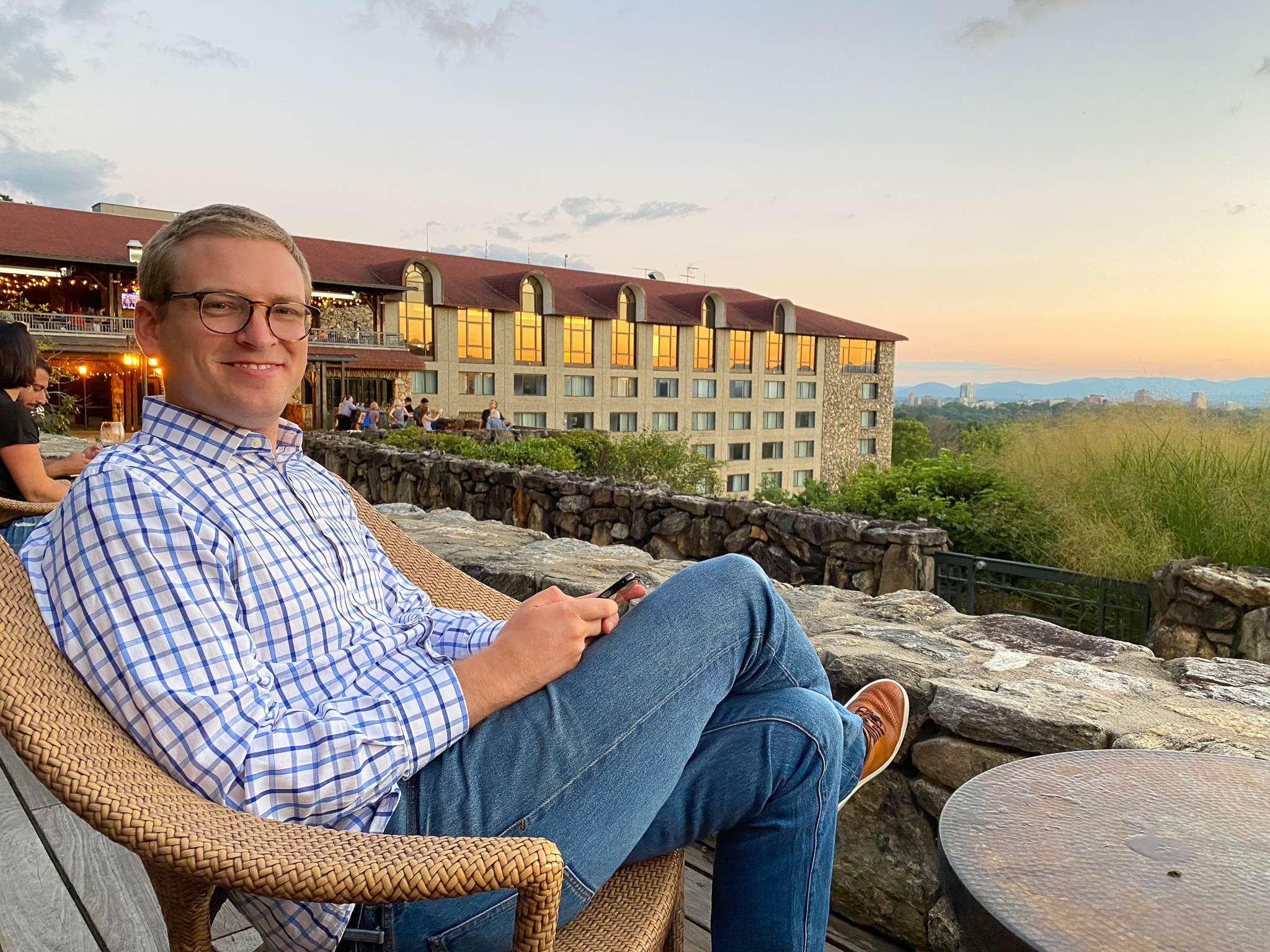We stayed in the Sammons wing and loved how it was attached to the main hotel. Our room was great. Nothing to rave about, but also nothing to complain about. We had a king size bed, great view, and a bathtub (the bathtub was something Nate special requested; he knows me too well!). I had heard the rooms were a bit dated so we went in with that expectation and honestly really enjoyed our room. I mean, give us a space to ourselves with a TV and good pillows and we are in heaven. From what I could tell, none of the rooms had balconies. That is the only thing I wish we had. I would have loved to sit outside without leaving our room. However, the windows did fully open and we opened them every morning. Also, there are seriously so many placed to sit at the Grove Park with amazing views I always found a nice place to read and look at the mountains.