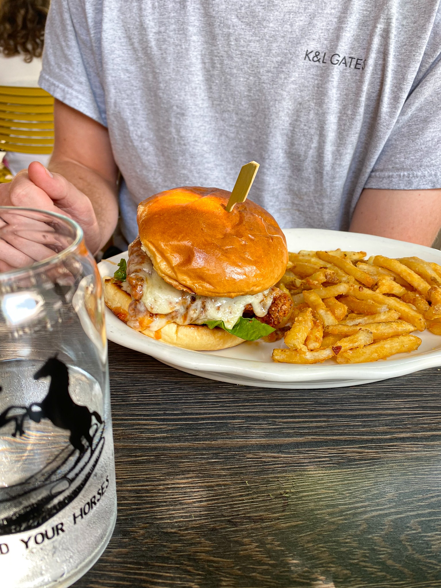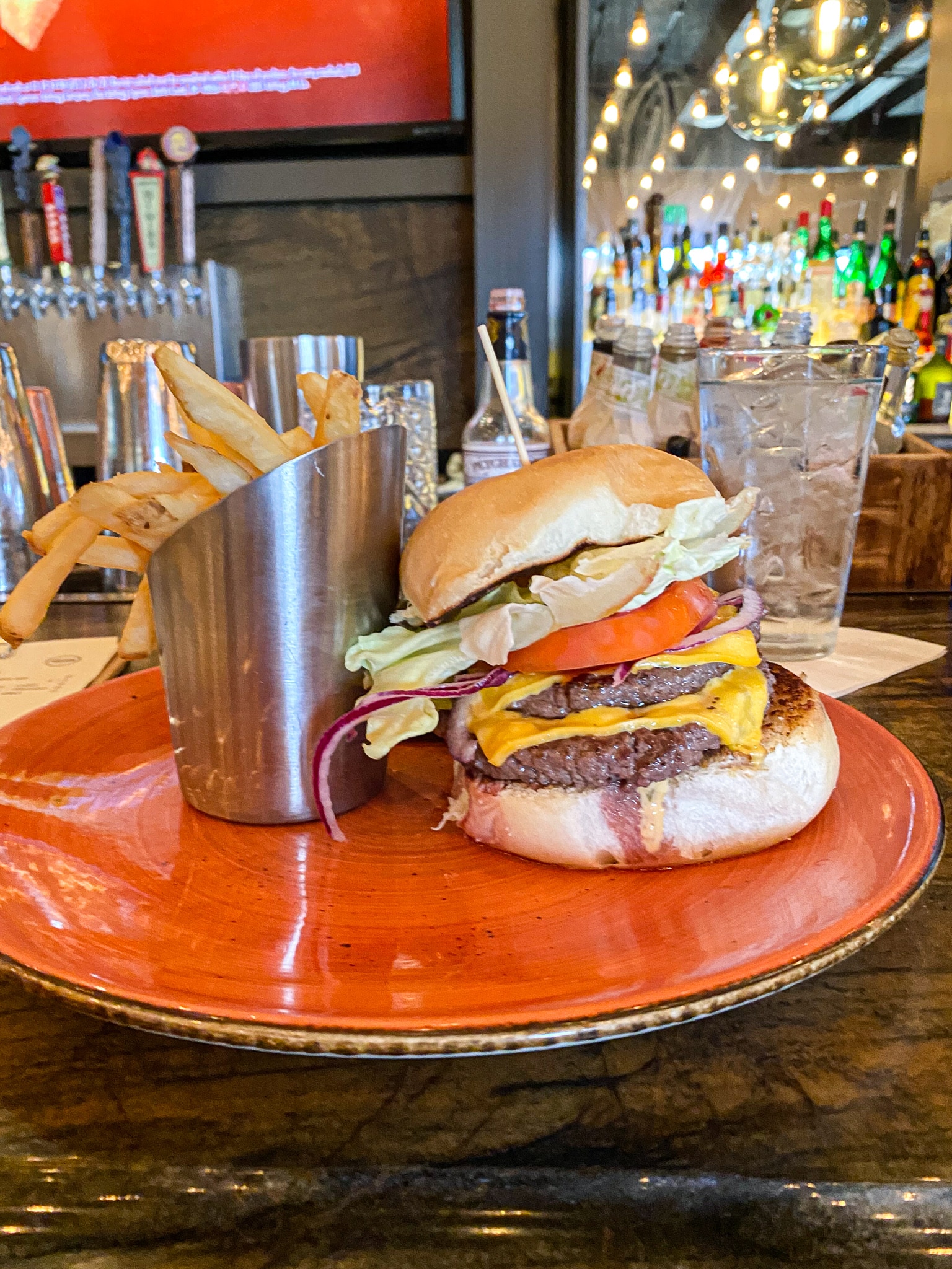 For lunch Saturday we went into Biltmore Village hoping to shop a bit and find a sports bar to watch Penn State play. Well, there was nary a sports bar to be found so we shopped a bit then headed back to Edison at Grove Park to watch the game. I am so glad we did because we both got the burger that was fairly life changing. I mean…SO. GOOD! One of the best burgers I have had.
