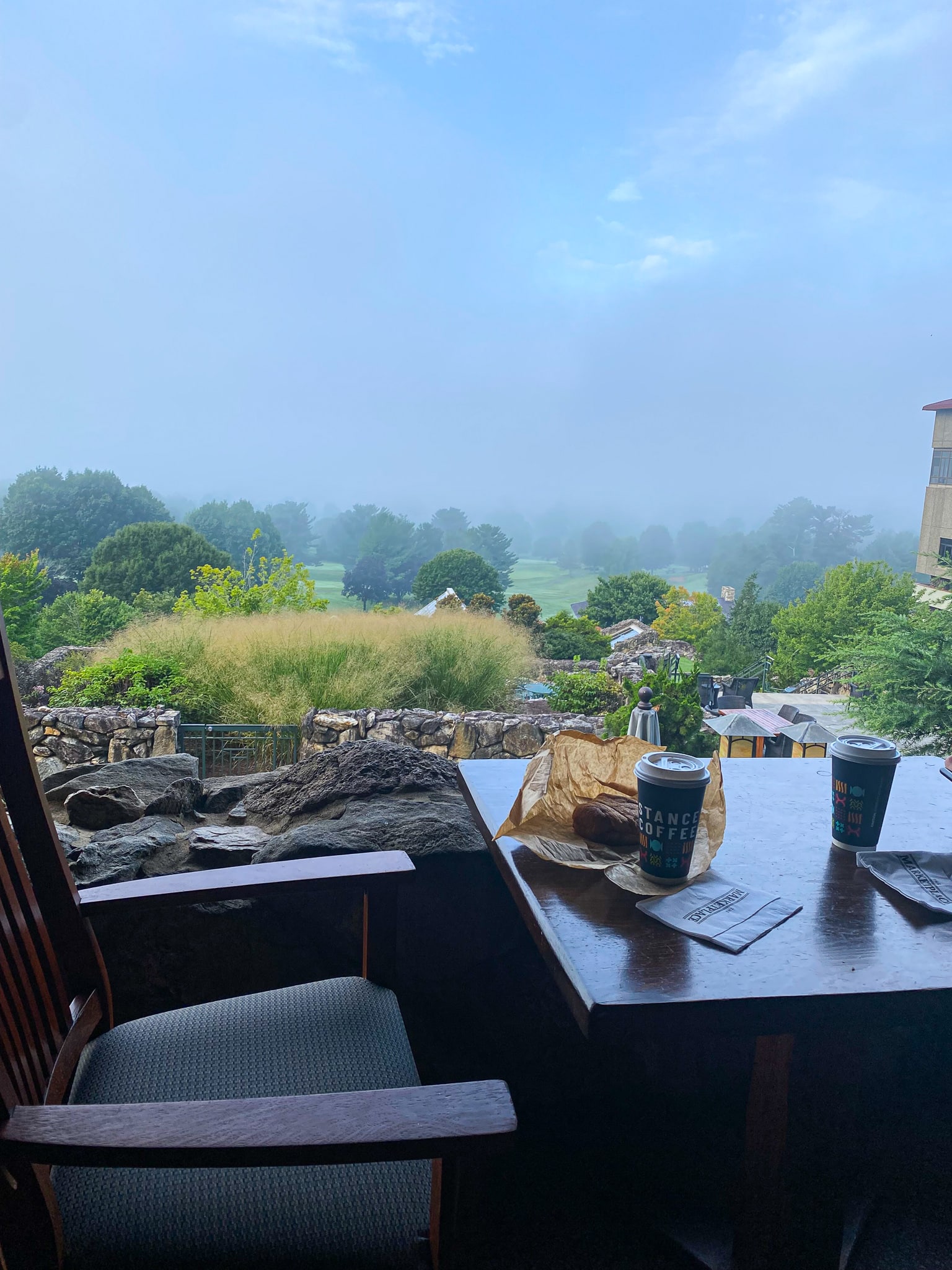 There was another little breakfast place you could stop into and get something on the go. We both opted for bacon, egg, and cheese croissants and Nate got black coffee while I enjoyed a mocha latte. While it remains a bummer we didn’t realize the buffet was included in our stay, it was really nice to grab breakfast and go eat it outside on the terrace. Every morning was perfectly cool and foggy; a much needed change from Charleston in September.