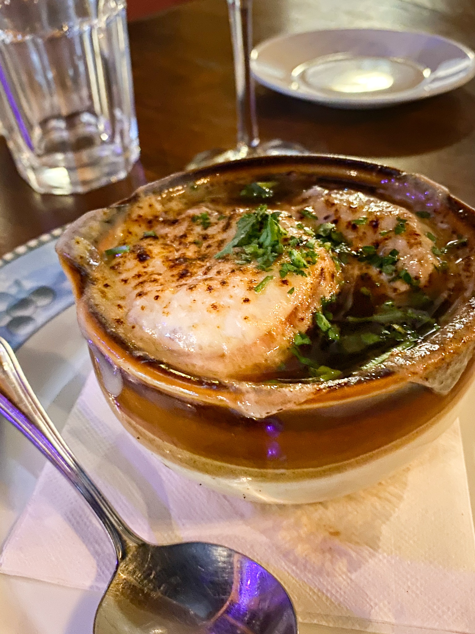 For dinner Saturday we went to a little French restaurant in town my friend Lily recommended called Bouchon. We needed a reservation and I am so glad we made one (this was the only reservation we made the whole trip). We had had such a huge lunch we ordered lighter at dinner and everything was very fresh and delicious. Bouchon sources all their produce and cheese locally and you could tell. The caprese salad was by far one of the best I have ever had (tomato was out of this world). Nate started with the caprese (trying his is what sold me on it) and then had the French onion soup.